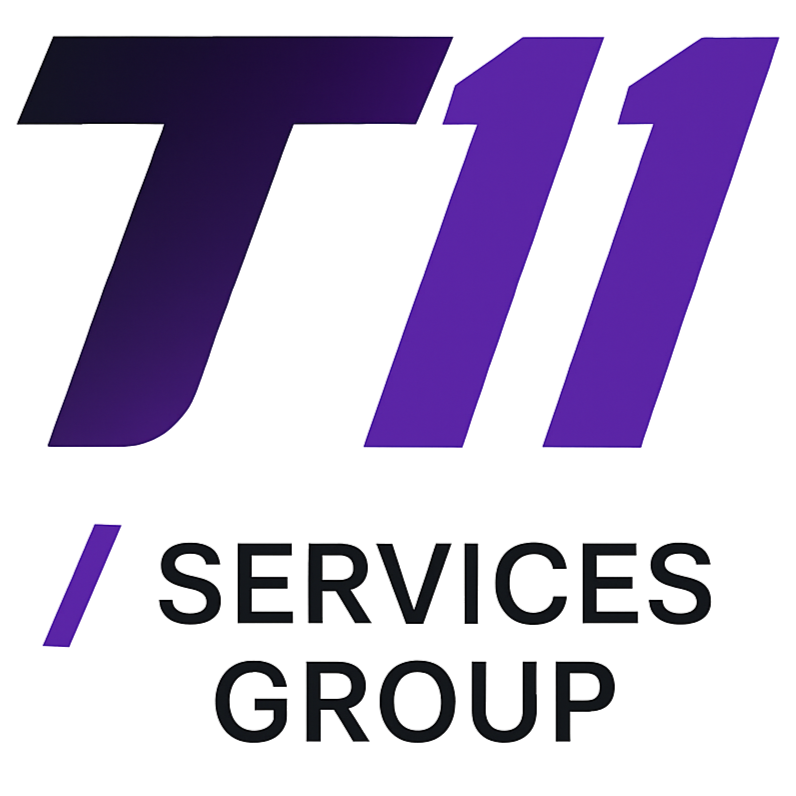 Logo with bold stylized text 'T11' and smaller text 'Services Group' below.