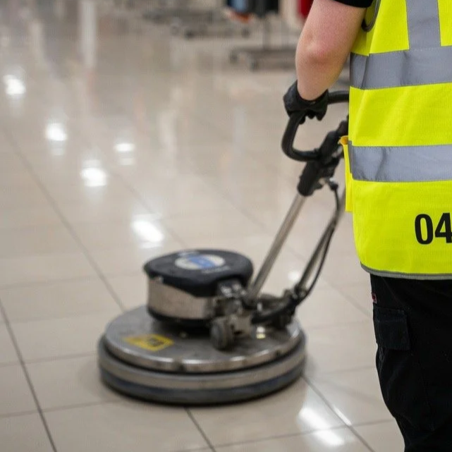 • T11 Services Group specialized commercial cleaning team in high-vis vests providing professional facility hygiene and industrial maintenance services.